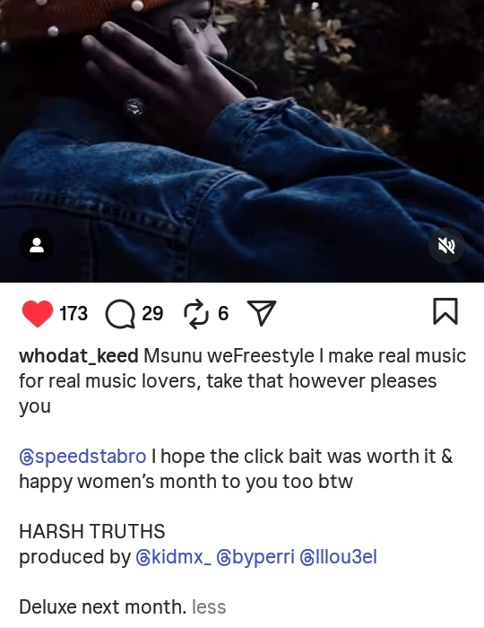 Fast forward to K.Keed’s latest Instagram post, where she responded publicly to the moment from her recent interview with DJ Speedsta.